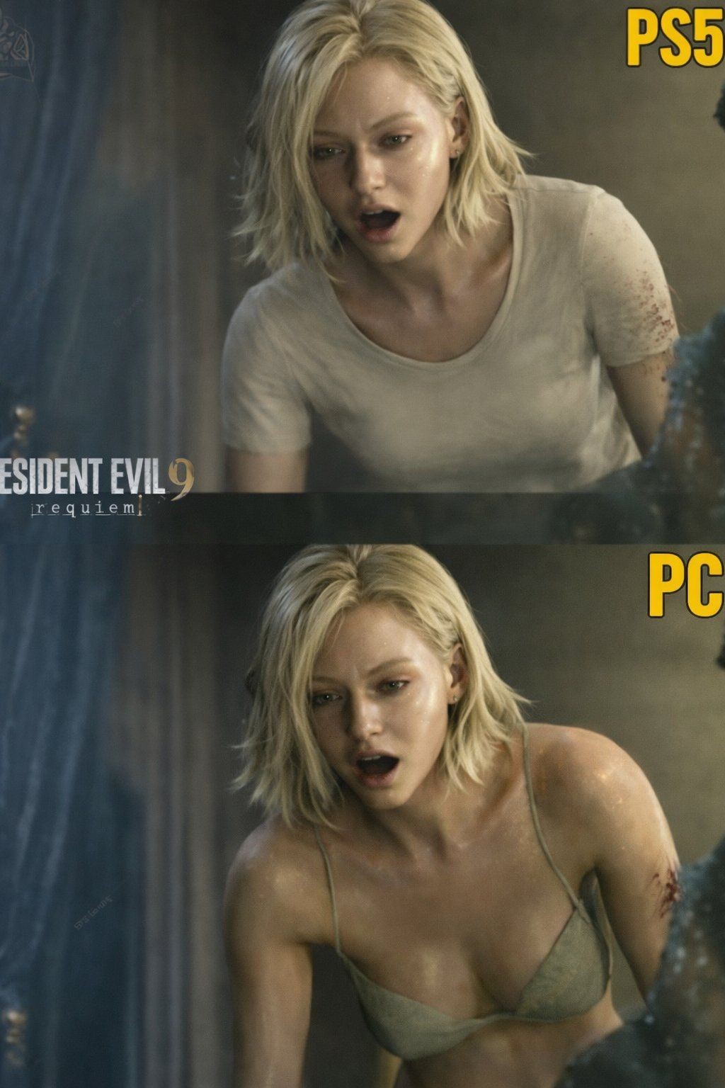 《生化危机9:安魂曲》发售后,激发PC大神们的热情,其Mod不断。近日游戏博主mei_c19分享格蕾丝的对比梗图,展示了女主在不同平台下的状态。