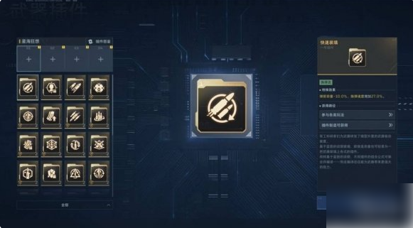 插件图标左下角如果有一个圆形三角标志,表示该插件是限定类型武器专属,仅某种特定武器可以装备。