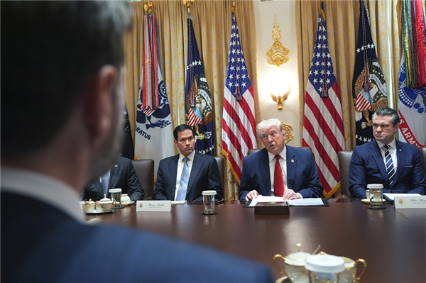 (当地时间2026年3月26日,美国华盛顿,美国总统特朗普在白宫举行的内阁会议上发言)