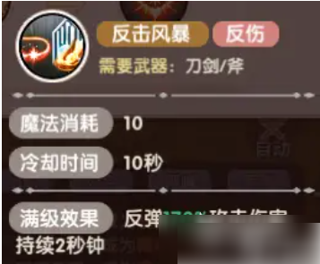 首先如果大家初期选择只是战士这个职业的话,那么在转职里面可以选择的分支是骑士,骑士的武器效果一般选择使用的就是双手剑或者是单手剑类武器,搭配可以用盾牌,那么这里其实它技能上面有一个特殊的技能叫做反击风暴,可以带来反弹的效果,一次性就可以带来170%的反弹攻击伤害,而且在被敌方秒杀的时候,依然能够反弹,这样的伤害,这里反弹的数值绝对不会超过对面血量上面。