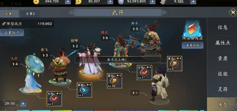 在此基础上,第六位角色可灵活补强:魏延提供稳定群攻输出与团队增益,典韦则强化前排承伤与反伤能力,二者均可与张飞形成双前排协同。主角职业建议选择扇子或画卷系,以强化控制链完整性与技能衔接流畅度。整套配置兼顾前排硬度、中排续航、后排压制,各位置职能清晰,无明显短板,适合从新手期平滑过渡至中期内容。