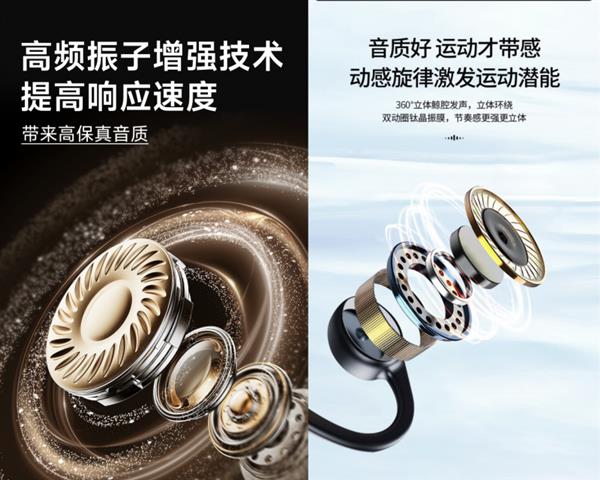 音质表现也非常好,它搭载高频振膜震子与双磁路驱动技术,支持FLAC、WAV等全格式无损硬解码。在播放《波西米亚狂想曲》时,人声细腻通透,低频下潜深沉有力,声场开阔,彻底告别了骨传导“听个响”的刻板印象。