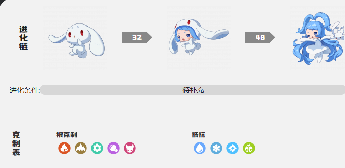 尽管初看温顺无害,但其属性分配均衡:生命值扎实、魔法攻击稳定、速度灵敏、物理输出亦具基础压制力,新手玩家可轻松完成前期养成。真正让它立于战术高地的核心机制是“捉迷藏”特性——当敌方处于冻结状态时,所有技能PP消耗额外+1点。这一效果与冰系控场逻辑深度耦合,不仅放大自身控场效率,更显著削弱对手续航节奏。需注意其属性克制关系:被火系、机械系克制,但对水系、冰系、光系拥有天然抗性,组队时应规避属性冲突,强化协同容错。