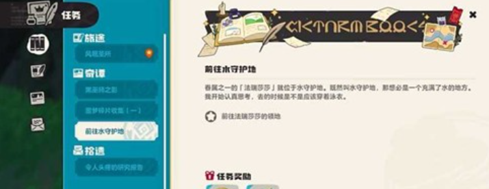 最稳妥、零门槛的获取方式是推进主线剧情。当冒险进程抵达第四章时,“水守护地”场景将自动解锁。该区域关联一条关键支线任务:玩家需先前往精灵莎莎处,依次回答三道谜题。正确答案分别为“板板壳”“绿耳松鼠”“一窝蜂”。答对后,系统会提示前往野外捕捉对应精灵并完成提交,即视为通过前置验证环节。