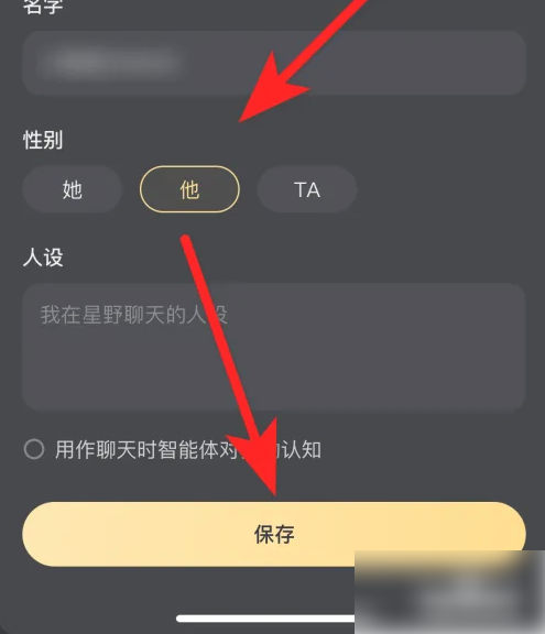 第四步:选择性别,点击【保存】即可设置性别,如图所示。