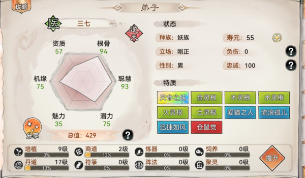建议:有空的时候可以搜多一下弟子储物袋,有时候缺点材料了也可以搜,收缴物品不要把生产弟子的忠诚度减得太低,会罢工。
