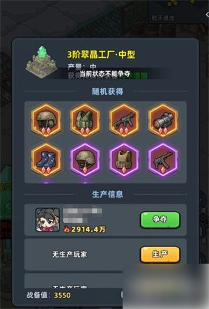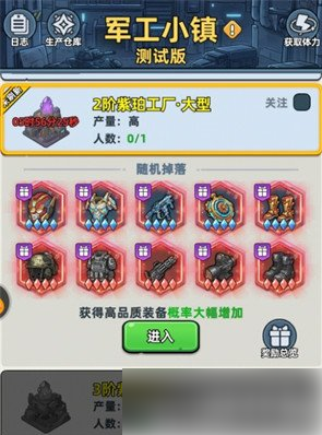 开启军工小镇玩法后,会同步开启指挥官装备功能,并且军工小镇就是生存33天中指挥官装备最为主要的获取途径。军工小镇里充斥着各种不同的怪物,这些怪物占据着指挥官装备生产工厂,玩家们先要与它们作战,成功战胜它们后,就可使用工厂来进行指挥官装备的生产。工厂的品阶越高,所能生产出来的指挥官装备品阶也就越好,同时游戏也会为玩家们罗列出各工厂能生产出来的指挥官装备情况,玩家按需去选择就好。