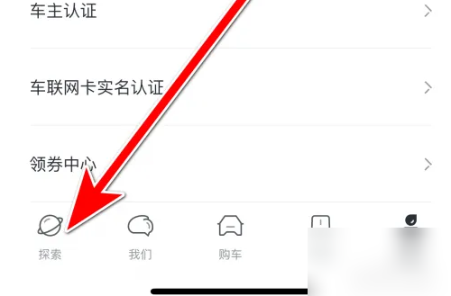 第一步:打开吉利银宋获脂河APP的首页,选择【探索】。