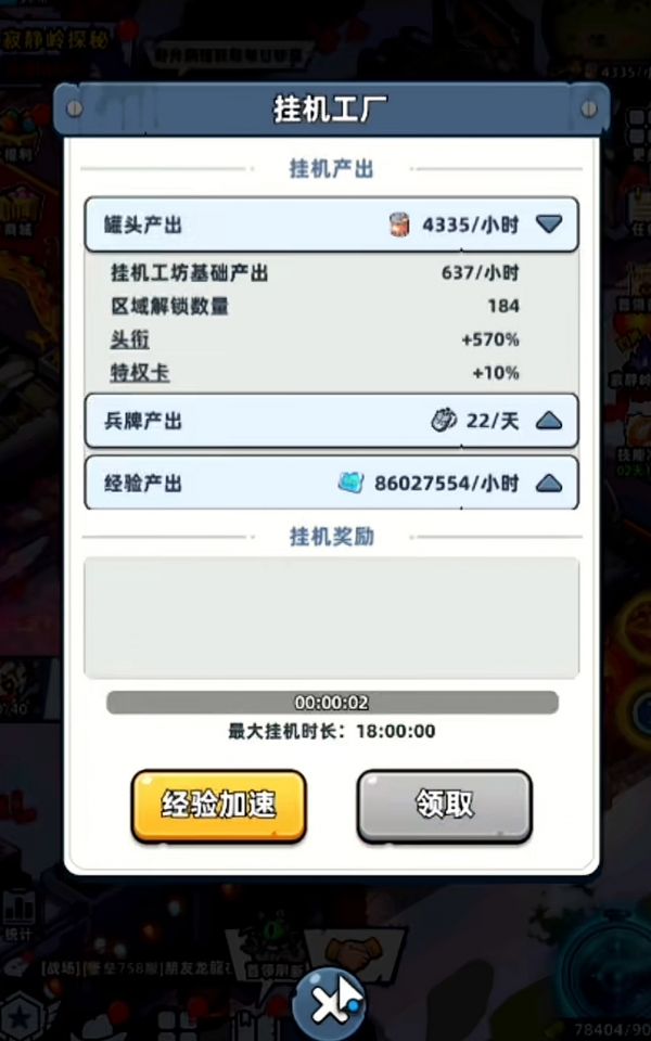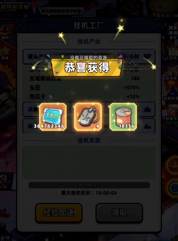 首先我们需要解锁工厂板块,解锁之后工厂就会自动开始运行,即便是大家在离线状态下,工厂也会稳定持续的产出基础资源,比如罐头和士兵的识别牌等。不过工厂产出的资源不会直接进入大家的背包中,如果长时间不领取,等到仓库的容量达到上限之后资源就会无法继续累积,所以大家要记得定时去主页的挂机工厂领取物资。