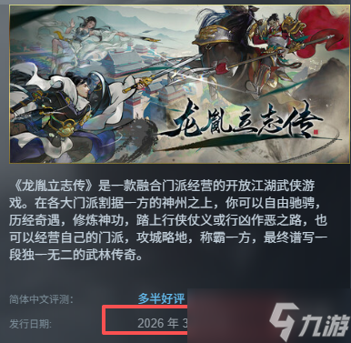 游戏《龙胤立志传》已于2026年3月13日在Steam发售,国区定价68元,。游戏以五代十国为蓝本,玩家作为龙胤遗脉从仙霞派外门弟子起步,在30余门派割据的乱世中揭开二十年前的血案真相。