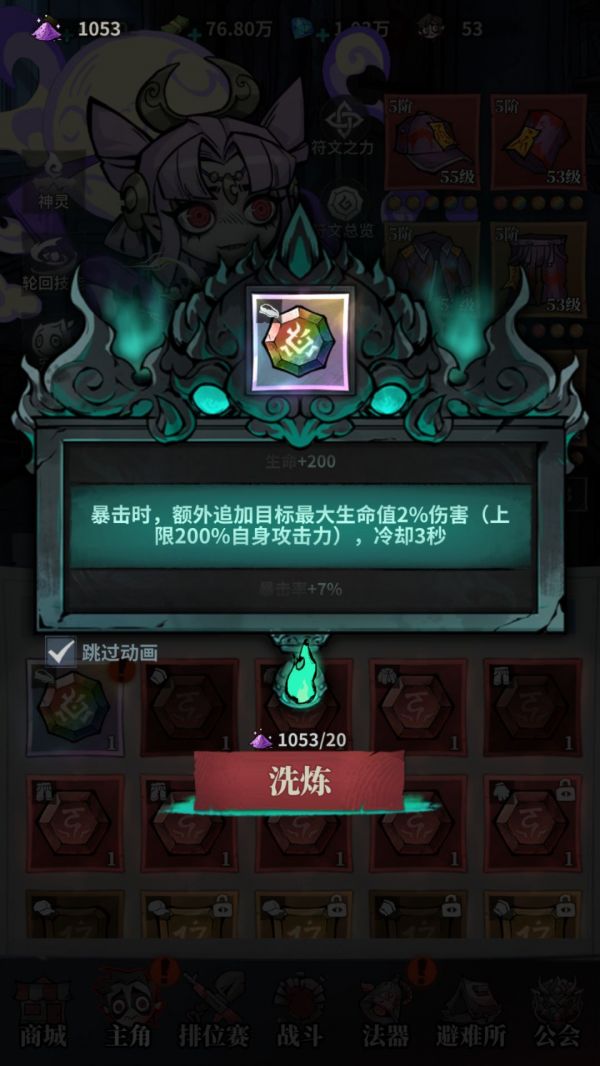 建议:初中期可叠同样的符文词条,叠加效果生效,收益可观;后期建议替换。