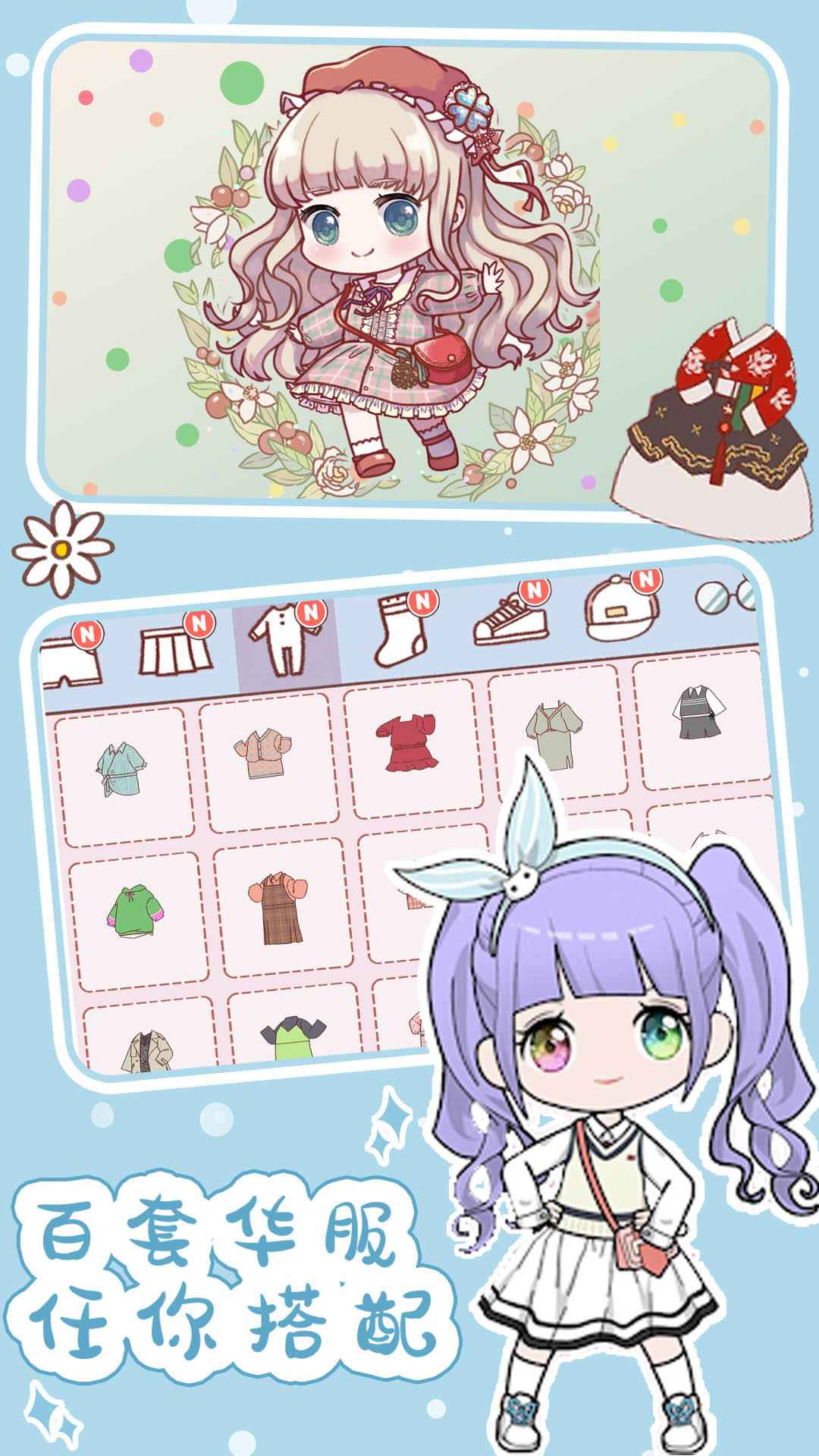 本作以扭蛋机制为核心驱动,构建超百套风格化服饰与配饰系统。玩家可自由组合裙装、发型、妆容及动态表情,更支持自定义背景场景与手绘风贴纸叠加,实现从角色造型到视觉叙事的一站式DIY创作。布娃娃具备多帧表情动画与肢体微动作反馈,强化陪伴感与沉浸感。