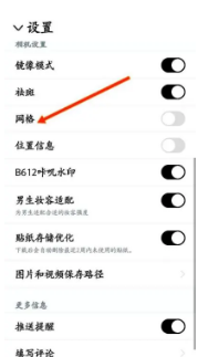 开启网格功能:在设置界面中,找到“网格”选项,打开其右侧的开关即可启用相机网格功能。