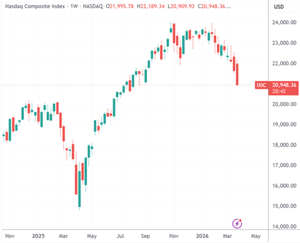截至周五收盘,纳斯达克指数本周累计下跌3.23%,创去年4月“关税冲击”以来最大单周跌幅。