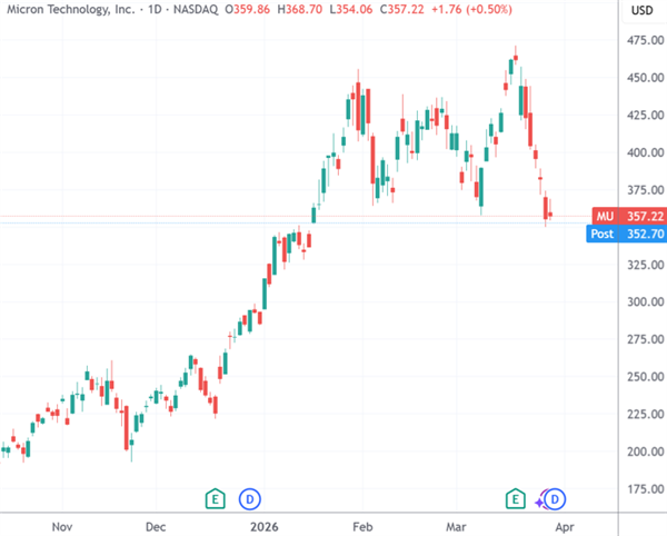 除了“七巨头”外,存储巨头美光科技虽然在周五止住了此前“五连跌”的步伐,但本周依然录得15.53%的整体跌幅。本轮下跌始于3月18日公司发布全面好于预期的财报,并在本周谷歌展示所谓的压缩算法TurboQuant后加剧。