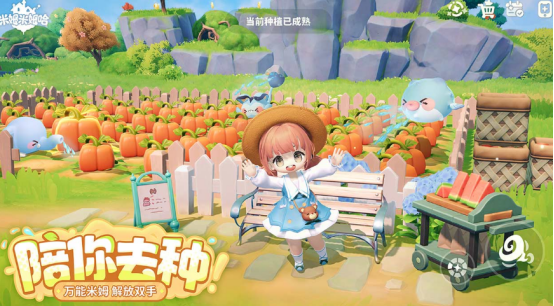 游戏采用开放世界架构,支持地面耕作与空中岛屿建造双重空间拓展。玩家可自由规划农田布局,垂钓采集、滑翔探索、骑乘巨型米姆参与竞速,亦能在浮空花园中穿梭互动。偷菜机制嵌入日常社交循环,配合动态天气与渐变天幕效果,强化沉浸式休闲体验。