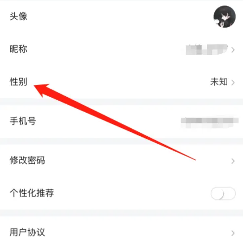 进入个人设置,点击【性别】。