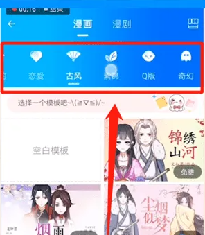 选择漫画的类型,再选择该类型中的模板点击进入。