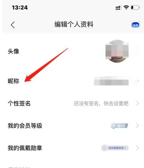 接下来,点击【昵称】。