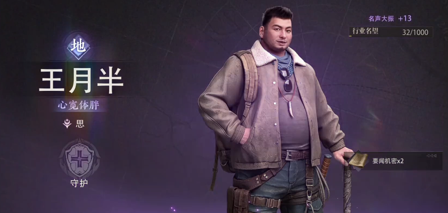 第三个为大家介绍的就是王胖子,王胖子当前也是作为一个古董经营者出现的,在游戏当中他虽然体型看起来比较魁梧,但是身手还是非常敏捷的,而且自身能力当中是也是探险可以为大家带来足够多的推进速度,比如他在各种工具使用的效果上面会有一定的学习能力,后期在枪法上面自己输出也是比较准的,游戏当中如果进行战斗的话,会有足够的群体输出能力,毕竟在技能效果上面丢出去的燃烧瓶,可以造成更高的火属性范围输出,对于一些出现尸鳖王之类的怪物来说,他还可以用另外的一个技能旋风铲来造成范围清理的功能。