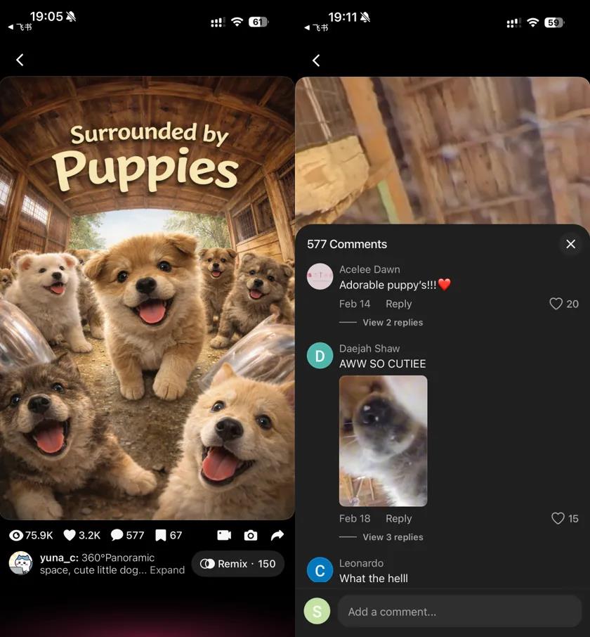 体验上,与单纯消费视频不同,用户可以360度转视角沉浸式撸狗,在 Spelling Bee 拼写测验里和一群网友比拼分数。
