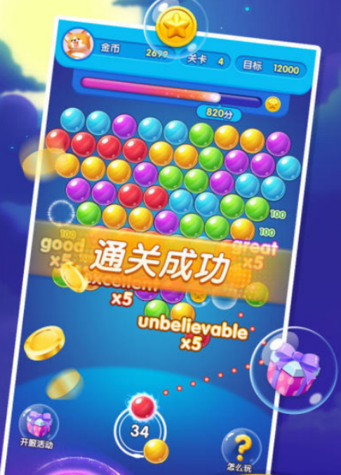 在传统三消框架基础上创新融入超人世界观,玩家化身泡泡龙超人,使用发射器瞄准顶部泡泡群,实现同色三连及以上消除。关卡结构层层递进,通关目标分数逐级提升,目前已上线超百个独立关卡并保持定期更新。整体画面采用高饱和度色彩搭配动态粒子特效,营造沉浸式消除节奏感。