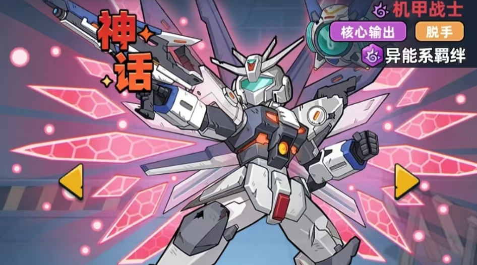 机甲战士是本套阵容的核心和灵魂人物,是第一个达到神话品质的异能系角色,有着很高的战术价值。除此以外,它还具有核心战技动能激光可以破坏敌方防御护盾。当高难度BOSS出现的时候,机甲战士的破防效果就显得尤为重要了,可以有效地脱离掉敌人的伤害减免,给团队带来毁灭性的爆发伤害。获得异能羁绊加成后,他每一次的攻击都是沉重的重锤,狠狠地砸向敌人的要害部位,是队伍里不可多得的输出核心。