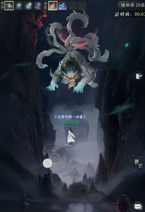 镇妖塔于玩家推进主线至玉京区域并完成对应章节任务后正式解锁。该副本采用经典逐层递进结构,共设多层关卡,每层封印不同种类与强度的妖物,敌方战力随层数提升呈阶梯式增长。玩家需从第一层起依次挑战,不可跳关。通关当前层后,即可领取专属奖励,如绝学心得等稀有修炼材料;当达成指定目标层数(例如第10层、第20层、第30层等),还将激活额外阶段奖励,其中包含可直接提升修为值的灵果——此类灵果服用不占用丹药使用次数,且无境界突破限制,是快速推进修为进度的关键道具。