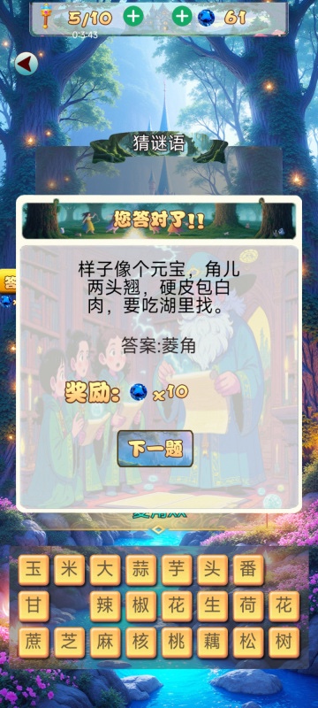该作以图文结合为核心设计逻辑,每关配有一张具象化插图,通过构图细节、符号隐喻及常见生活元素传递关键信息。题目难度梯度平缓,由浅入深逐步提升,适配不同年龄层与认知水平的用户。题库内容广泛,涵盖高频成语、实用生活用品、基础常识词汇等,贴近真实语境。限时答题机制增强节奏感与参与感,使传统益智玩法更具竞技张力。