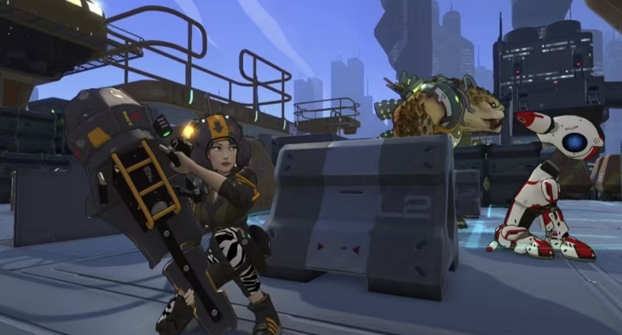 本作采用美式漫画风格美术设计,角色造型前卫、建筑结构充满未来科技感。核心玩法为回合制战棋,玩家需在网格地图上部署单位,合理释放技能并利用地形优势。战斗中可见多种异形角色、高精度射击武器及动态激光特效;部分角色可携带专属宠物协同作战,整体题材兼具科幻张力与策略深度。