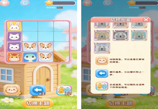 融合经典数字合并机制与萌系动物图鉴收集的休闲益智游戏。玩家通过上下左右滑动,将相同等级的宠物图标(如小猫→橘猫→雪豹)两两合并,逐级升阶解锁稀有物种。界面采用马卡龙色系设计,配有撤回操作、随机刷新与自动提示功能,单局时长控制在2–5分钟,适配全年龄段用户日常放松需求。