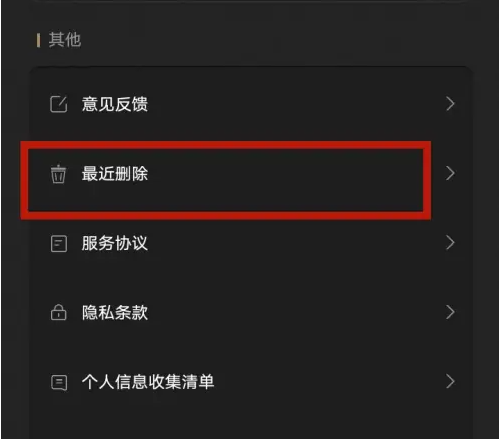 更多服务页面,选择查看最近删除分类。