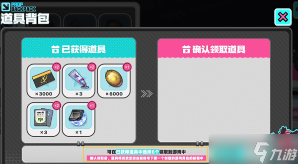 重点注意:抽完之后一定要进【道具背包】选6件道具带进游戏