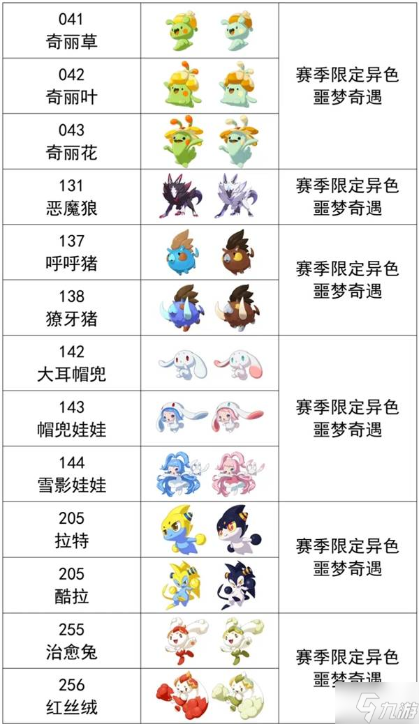 普通野生精灵在本赛季出现异色外观,赛季结束后该外观不再出现