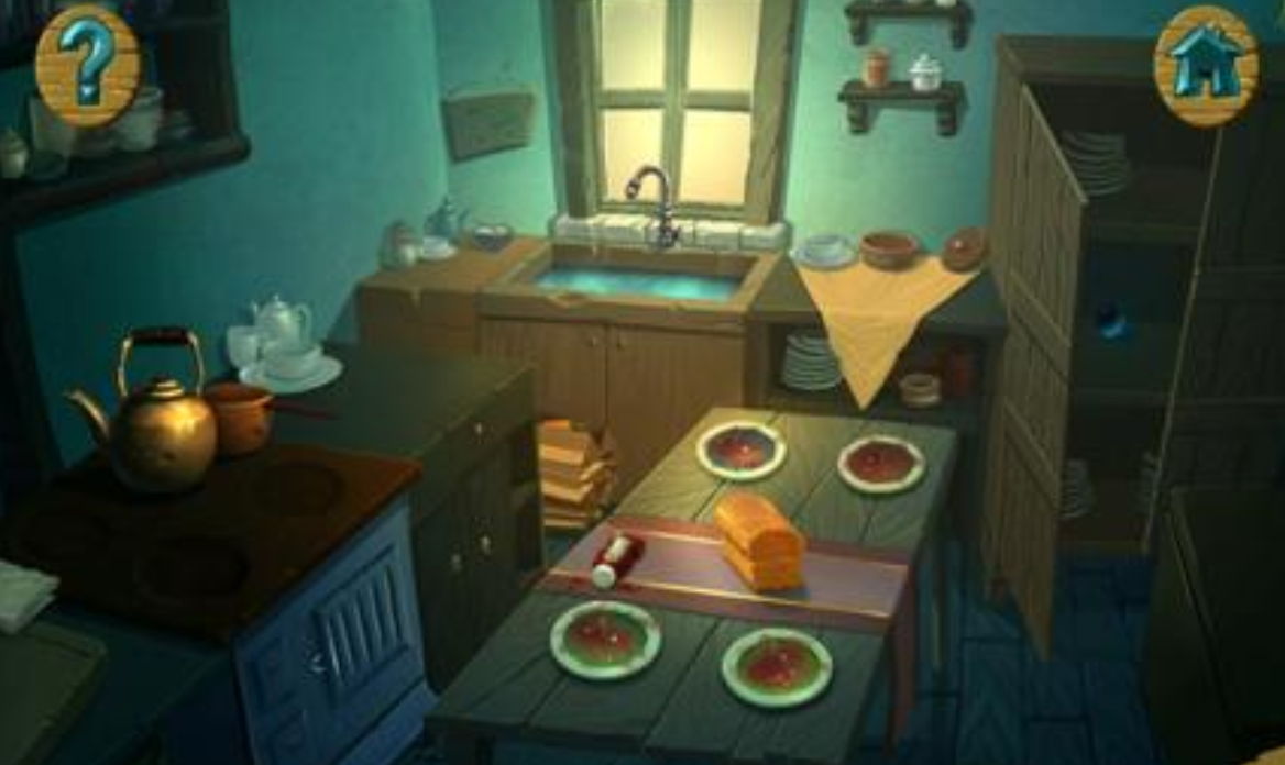 首关设定于布满机关的石室空间。桌面捕鼠器与手写纸条构成初始信息锚点;墙面四组网格虫的移动路径隐含色块排列逻辑,据此可解锁抽屉获取延伸线索。梯子需精准置于水桶旁,用于取水扑灭火焰,继而拾得第二张关键纸条。整合各处数字线索后,得出四位密码“6483”,成功开启左侧房门。后续厨房区域中,胡萝卜、床板木纹走向、窗框刻印数字等细节彼此呼应,形成闭环式解谜链条,最终导向通关出口。
