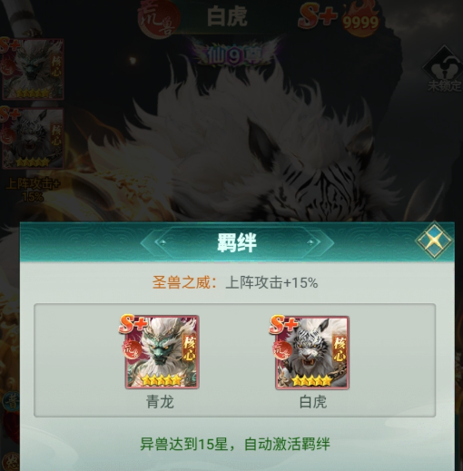 羁绊和阵容的搭配,就可以让白虎的战斗力更上一个台阶。白虎和青龙的专属羁绊圣兽之威,两者可以同时的上场,就可以让白虎获得15%的全队攻击加成。青龙的青龙结界还能让白虎在每一次攻击目标命中时都能迅速的恢复生命值,解决白虎输出高,但是生存弱的痛点。阵容搭配上面,前排就应该选择朱雀,玄武,朱雀主要是以群伤去压制血线,玄武可以减伤,还能有效反控去保护队友。后排搭配腾蛇就能有效破除敌方的护盾,让白虎的单额高体伤害就可以毫无损耗地打在目标的身上。