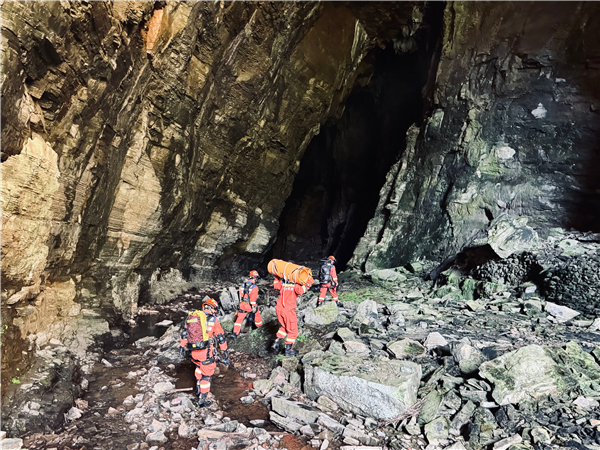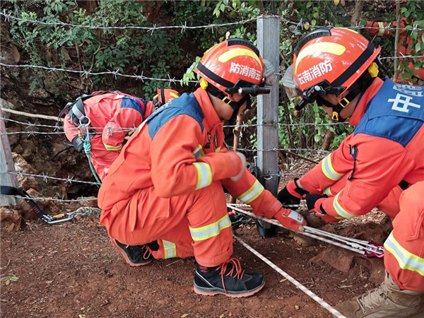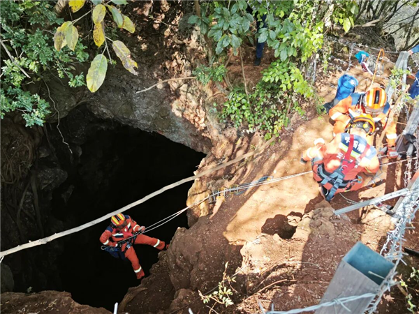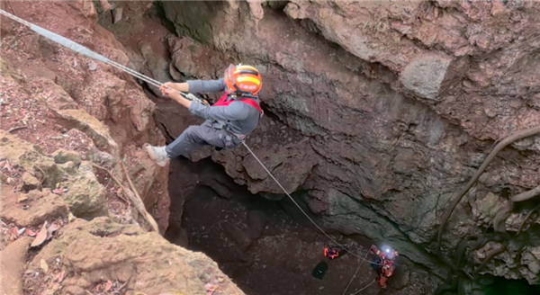 男子通过绳降方式下到15米深的洞穴底部后,发现无法靠绳索返回地面,只好报警求助,最终经过紧张救援,男子成功脱困