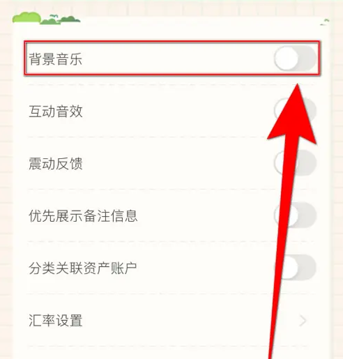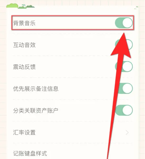 【背景音乐】后面的圆点变为绿色即表示团团记账打开背景音乐成功