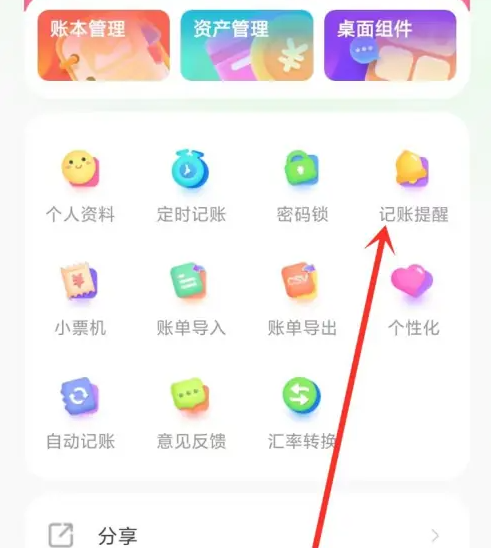 在我的页面,点击记账提醒进入。