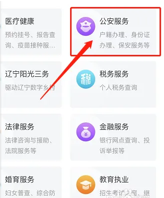 在公安服务页面里,点击户籍业务。