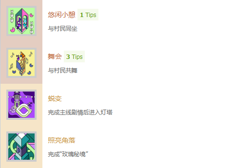 对于收集爱好者而言,就可以选择去完成回忆大师,还有往事重温。这就是解锁率最低的两个隐藏成就,在完成生命之源第4章节之后,来到回忆大厅,接下回忆的任务。地图各处头顶都会有感叹号的村民,这些其实都会藏着回忆线索。20个回忆任务会散落在各地,慢慢收集解锁,在完成所有之后就能揭开谜题,然后顺利的拿到回忆大师。重玩任意一个解锁的回忆,就可以直接解锁往事重温,也算是给收集路上的一个小小回馈。