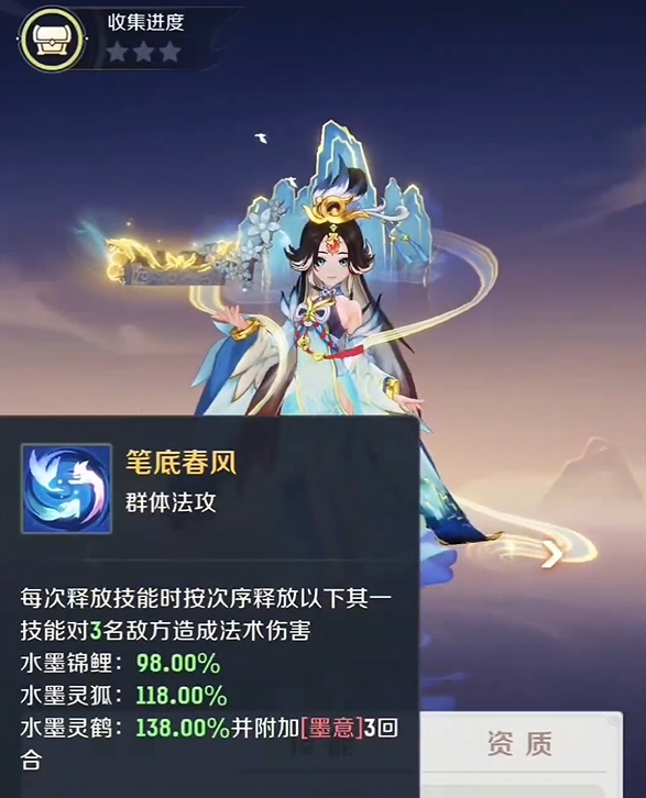 画中仙有一个主动技、一个特技和两个被动,并且这四个技能在实战中都极为实用。首先是画中仙的主动技,它可在释放时对3名敌人造成群攻伤害,配合队伍中其它玩家、伙伴和灵兽的群攻效果,能快速地清理掉血量较低的小怪,不让它们影响后续的战斗。特别是在初期时,人们若是与多名拥有画中仙的玩家组队,那清怪效率可谓非常的夸张。而且画中仙还有一个被动名为写意,可让它在受到超过自身最大气血35%的伤害时,令此伤害减少50%,极大地保证了它在战场上的生存能力。
