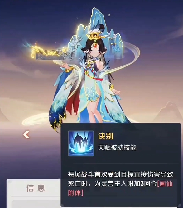 此外,即便画中仙在战斗中不慎死亡,它还能凭借着被动诀别,在阵亡的同时为玩家施加画仙附体效果,继续为玩家提供助力,好让玩家能带着它的祝福完成对强敌的翻盘。而在养成上,适配画中仙的技能书也比较多,玩家可选高级盾气来令画中仙变得更肉,也可选择高级反震来让敌人不敢对画中仙动手,甚至还可打上高级法连、高级灵性等技能,使画中仙变得更强。