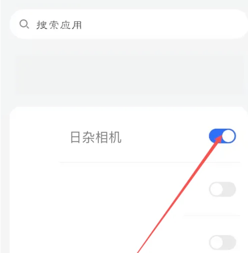 在应用列表找到日杂相机,也可以使用搜索查找,然后点击右边按钮,打开权限即可