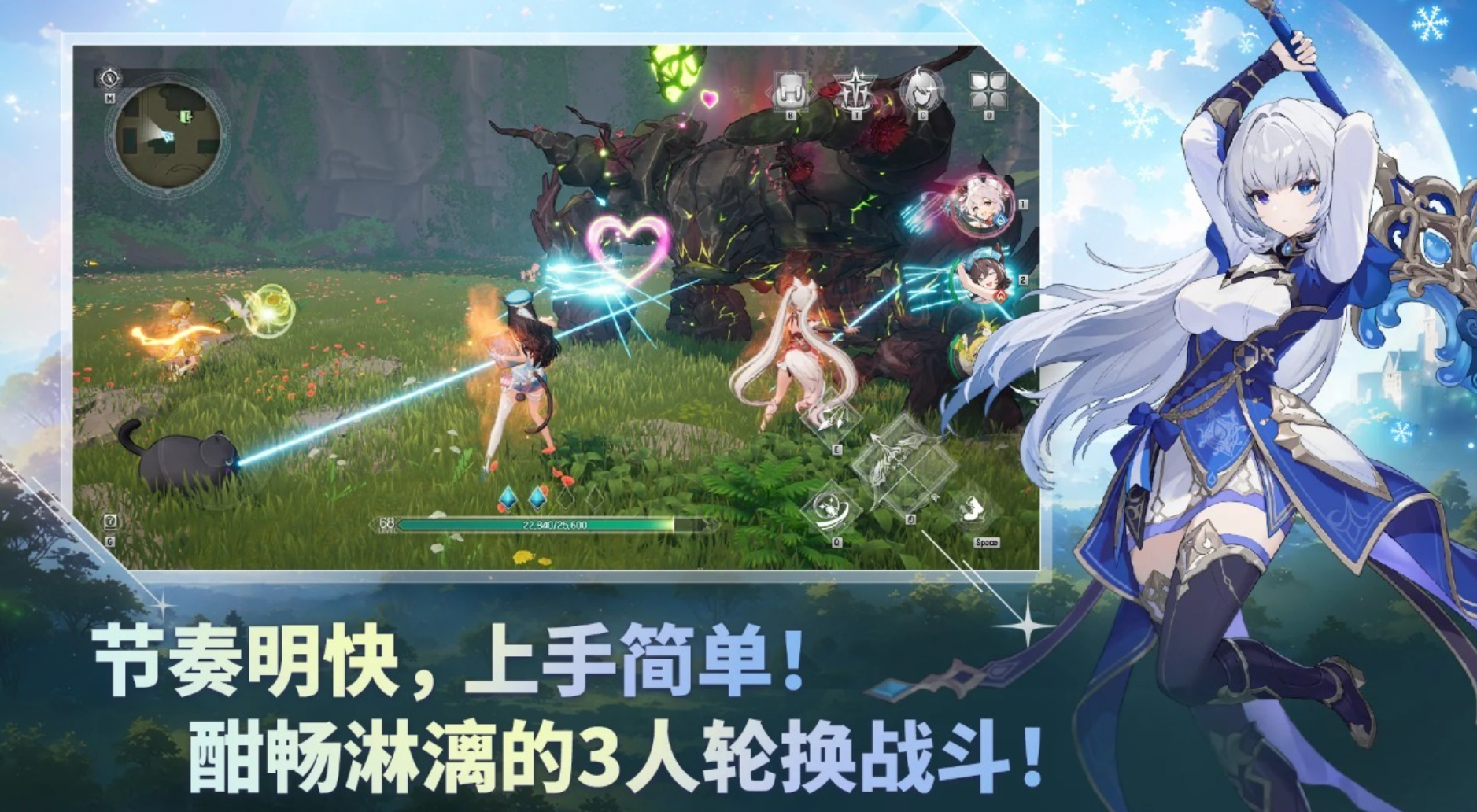 战斗采用高速三人轮替制,节奏紧凑、操作响应迅捷。每位角色绑定光、暗、炎、雷、冰、风六大基础属性之一,彼此存在明确克制关系(如炎克风、风克雷)。玩家需实时观察敌方弱点,在战斗中灵活切换出战位,触发连携大招链。该机制弱化纯数值碾压逻辑,强调预判、时机与属性协同,新手亦可在数分钟内掌握基础连招循环。