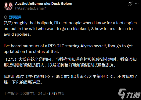 来自Dusk Golem的消息称,DLC将包含艾达与里昂,此前他还表示听说DLC会加入艾莉莎(格蕾丝养母)。