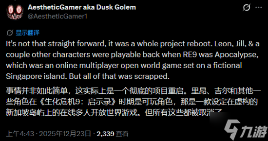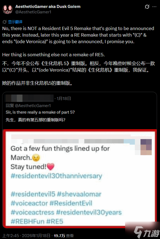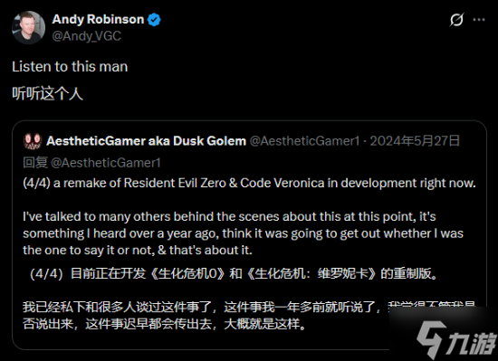 来自NateTheHate和Dusk Golem,后者补充称,所有采用RE引擎的《生化危机》游戏都会登陆Switch 2,而这也将包括《生化危机:代号维罗妮卡》重制版以及未来的新作。