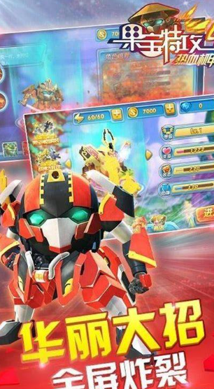 机甲无双燃热血,果宝集结战不停,3D对战超震撼,养成竞技两相宜,玩家可以悉心培养机甲提升战力,参与主线闯关和玩家实时竞技,感受机甲对战的热血与刺激,机甲合体玩法十分独特,多台果宝机甲能组合成强力形态,战力翻倍,对战画面流畅,技能特效不花哨但辨识度高,贴合动画原版效果,养成竞技无负担,热血情怀永不忘。