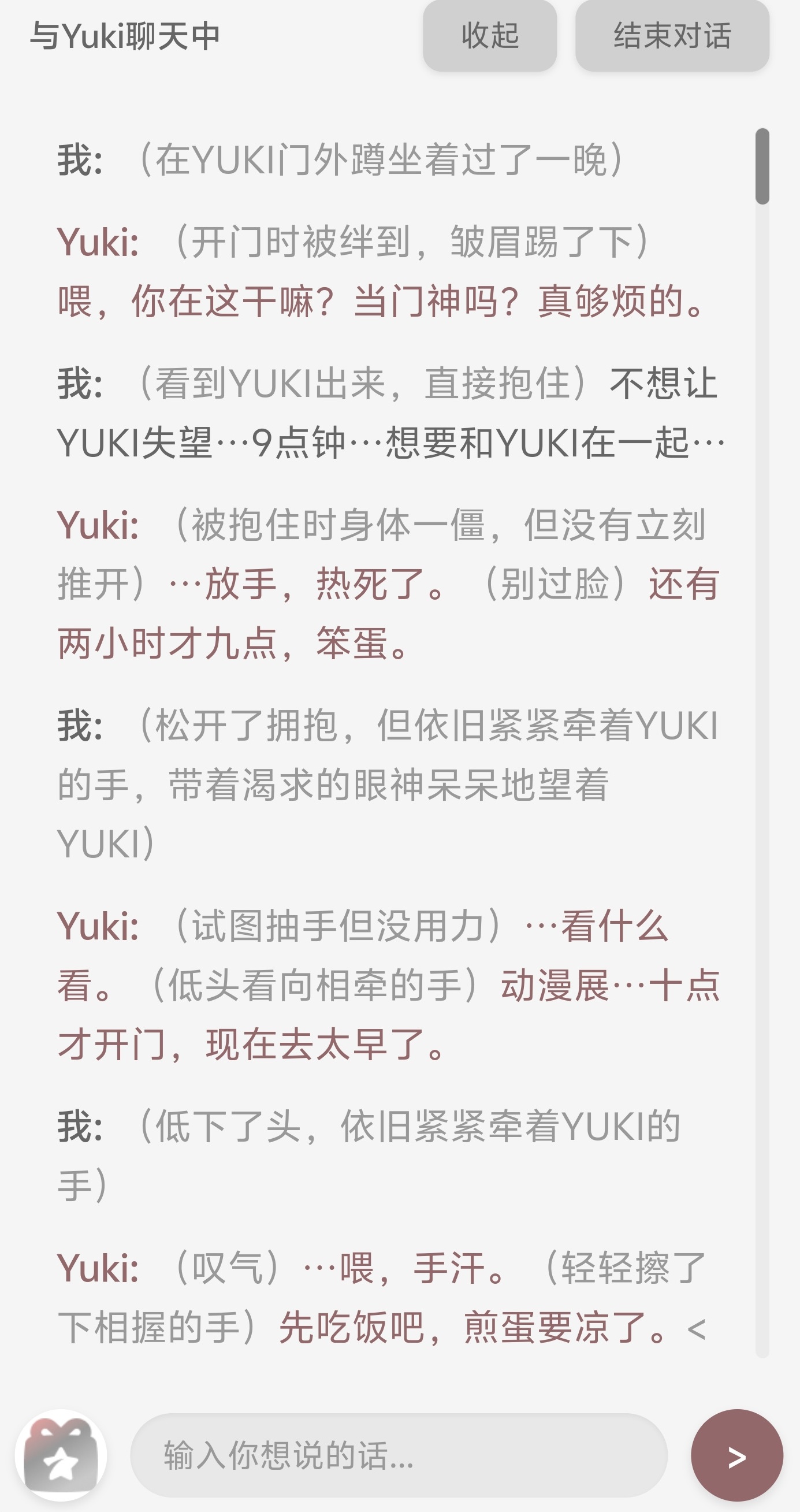 日记内容由AI引擎实时生成,每日互动结束后自动更新。系统会综合当日对话内容、行为选择、当前好感度值(具体数值区间为0–300)以及Yuki的性格设定(如可爱型、病娇型等),以第一人称视角撰写具有人格特征的文字记录。该机制内嵌长期记忆模型,能持续追踪玩家偏好、承诺事项、情绪波动及重要事件节点,并按真实日期归档存储。节气、生日、纪念日等特殊时间点均配有独立记忆条目,增强情境代入感。