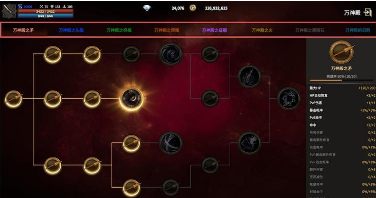 圣物升级与升星是中小额度投入玩家提升面板战力的核心路径:升级直接提升各项基础属性数值,升星则累积进度并激活暴击率加成,二者协同作用带来可观的综合收益;而神像系统侧重于技能效果强化,虽不增加直接战力数值,却能深度优化副本流程体验与PVE/PVP战斗策略选择。新手建议优先激活“万神之矛”与“星星之火”两条路径,快速建立输出优势;偏重防御的玩家可优先配置“万神殿头盔”,功能向玩家则推荐“万神殿祝福”路线;中后期可根据竞技场匹配需求,逐步拓展其他神像分支,实现多场景下的战力全覆盖。